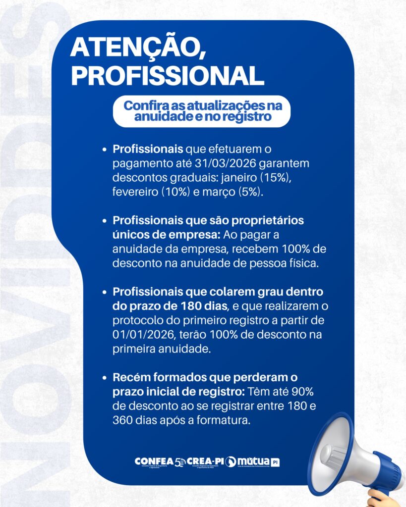 O Conselho Regional de Engenharia e Agronomia do Piauí (CREA-PI) informa que a Academia Piauiense de Engenharia (APIENG) está com…