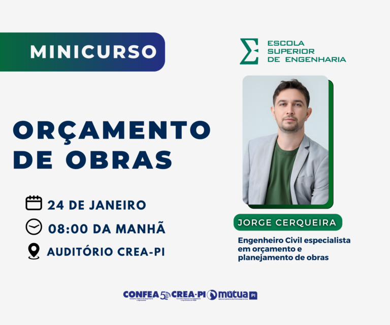 O Conselho Regional de Engenharia e Agronomia do Piauí (CREA-PI) promove, neste sábado (24), o Curso de Orçamento de Obras,…