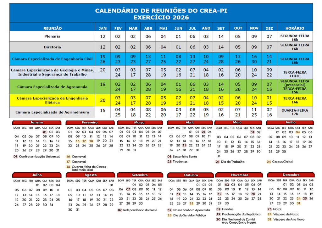 Calendário de Reuniões do Crea-PI- Exercício 2025