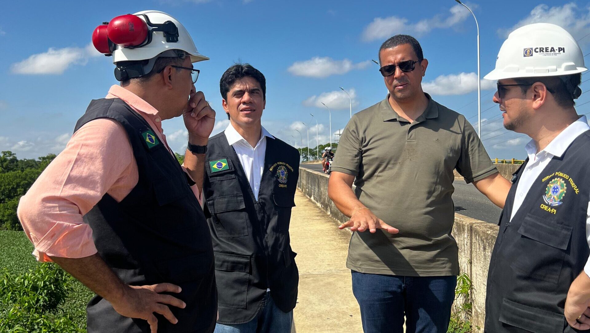 Engenheiros da Comissão de Pontes e Grandes Estruturas do Conselho Regional de Engenharia e Agronomia do Piauí (CREA-PI), acompanhados pelo presidente Hércules Medeiros, realizaram, nesta terça-feira (10), inspeção técnica na Ponte Leonel Brizola (Ponte do Mocambinho), na zona Norte de Teresina, após relatos da comunidade sobre desníveis e irregularidades na passarela destinada a pedestres e ciclistas.