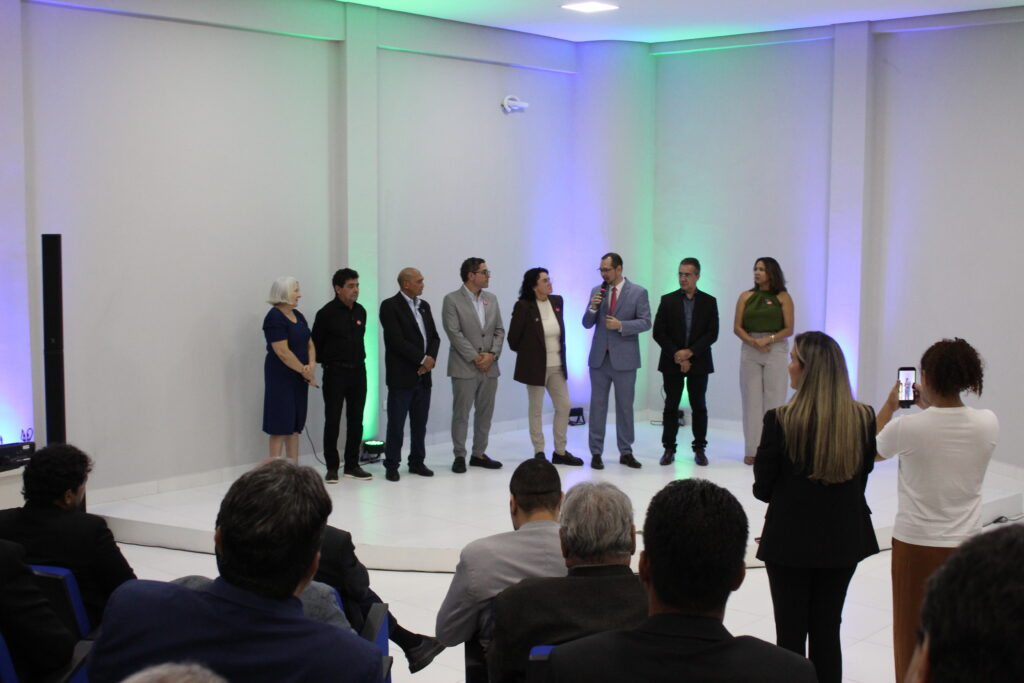 Presidente do CREA-PI, Hércules Medeiros, ao lado de autoridades, durante discurso na inauguração da nova Inspetoria. Foto: Ascom/CREA-PI.