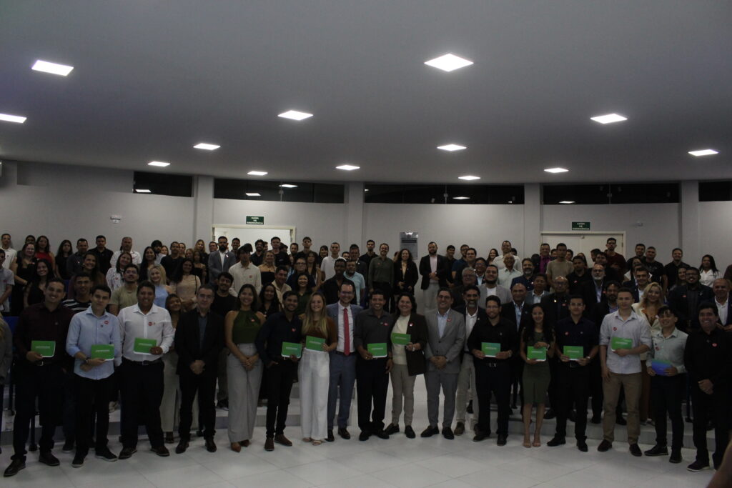 Durante a cerimônia, os recém‑formados em engenharia pelo CHRISFAPI receberam simbolicamente suas carteiras profissionais, em uma entrega conduzida pelo coordenador do curso, engenheiro Marcelo Farias.