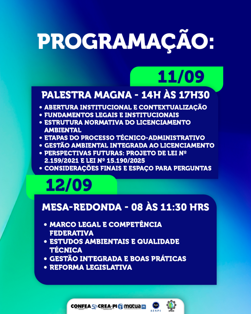 O evento busca lançar luz sobre os desafios e avanços do licenciamento ambiental no Brasil, com foco nas mudanças legislativas recentes, a gestão integrada entre órgãos e instituições, e os novos caminhos para tornar o processo mais eficiente e sustentável.