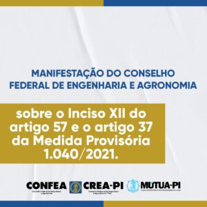 ASSUNTO: Manifestação do Confea sobre o Inciso XII do artigo 57 e o artigo 37 da Medida Provisória 1.040/2021, que dispõe sobre a facilitação para abertura de empresas, a proteção de acionistas minoritários,