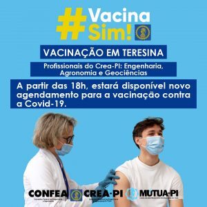 Hoje (30), a partir das 18h, estará disponível novas vagas para agendamento da vacinação contra a Covid-19, em Teresina, para os profissionais da engenharia, agronomia