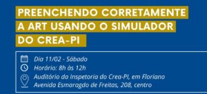 O Crea-PI, através do Programa Jovem Engenheiro, realizou o curso “Preenchendo corretamente a ART usando o Simulador do Crea-PI”, em Floriano, no sábado (11/02), para