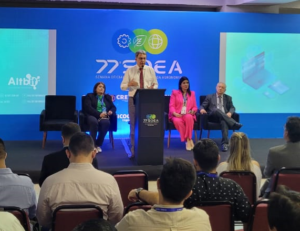 Debate reuniu os presidentes da Mútua e dos Creas do RS, PR e AC Um dos painéis da 77ª Semana Oficial da Engenharia e