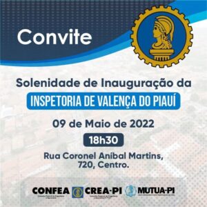 O Conselho Regional de Engenharia e Agronomia do Piauí – CREA-PI realizará, nesta segunda-feira (09/05), a inauguração da Inspetoria Regional de Valença do Piauí, e convida