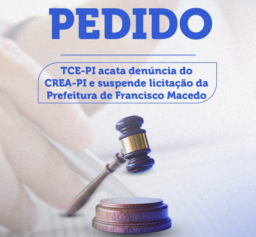O Tribunal de Contas do Estado do Piauí (TCE-PI) concedeu medida cautelar solicitada pelo Conselho Regional de Engenharia e Agronomia do Piauí (CREA-PI) e determinou a suspensão da Concorrência Pública nº 012/2025 da Prefeitura Municipal de Francisco Macedo.